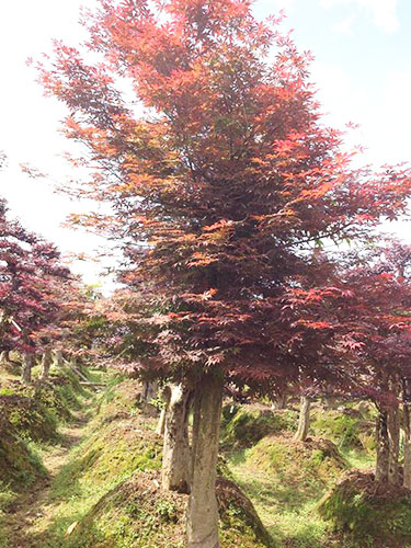 紅楓是一種非常美麗的觀葉樹(shù)種,其葉形優(yōu)美,紅色鮮艷持久,枝序整齊,層次分明,錯(cuò)落有致,樹(shù)姿美觀。廣泛用于園林綠地及庭院做觀賞樹(shù),以孤植、散植為主,宜布置在草坪中央,高大建筑物前后、角隅等地,紅葉綠樹(shù)相映成趣。它也可盆栽做成露根、倚石、懸崖、枯干等形狀,風(fēng)雅別致。
