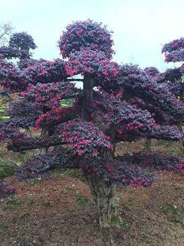 造型紅花繼木:選用深山老林野生檵木資源進(jìn)行藝術(shù)造型與專業(yè)培植。經(jīng)過園藝師數(shù)十年的技術(shù)更新?lián)Q代,現(xiàn)已發(fā)展成三大類(嫩葉紅,透骨紅,雙面紅)、15個(gè)類型、41個(gè)品種。冬艷紅型是唯一在冬季開花的品種。